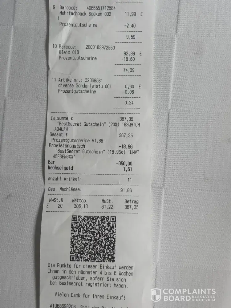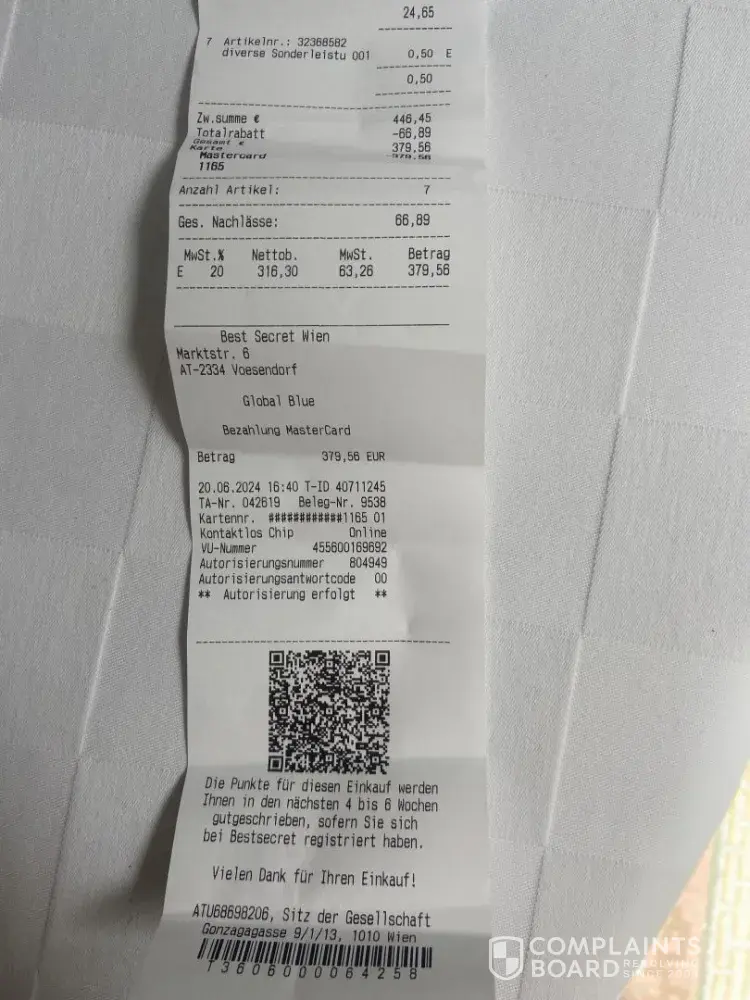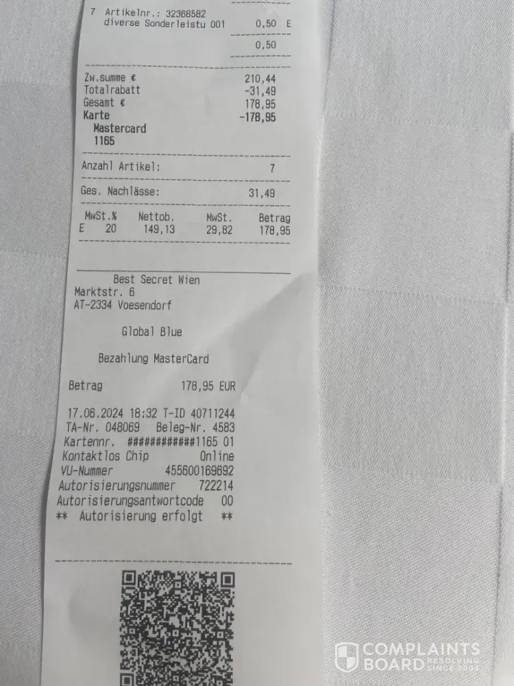 6. Also, as I had no information that my luggage will eventually come to Vienna, I had to buy a small cheap suitcase for my things. The check for 50 EUR is attached as well.