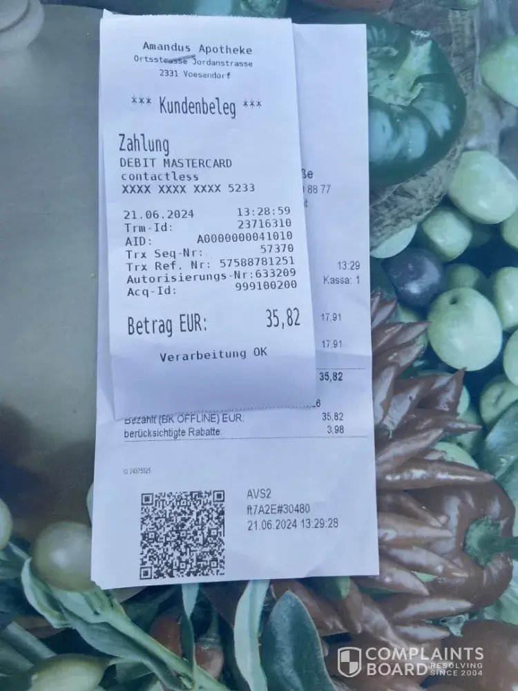 7. Besides, all my medicines were in the luggage, and as I was afraid to live without them, I had to buy some new ones. The bill of 36 EUR is attached as well.
