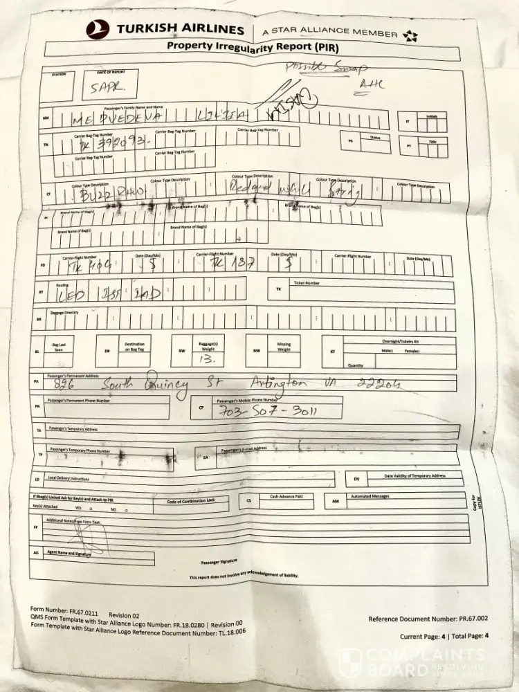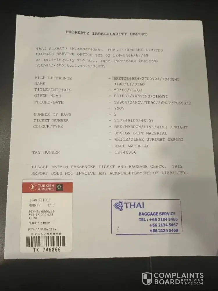 Formal complaint: involuntary rebooking, lost baggage, and child’s illness due to turkish airlines negligence