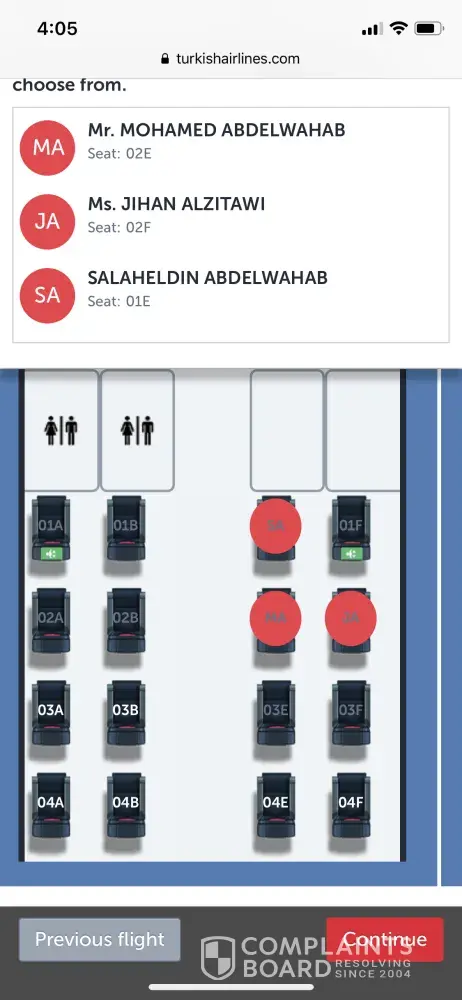 I am also attaching the current booking of the seats. You can see that they put my son alone while I originally put him between his father and I.