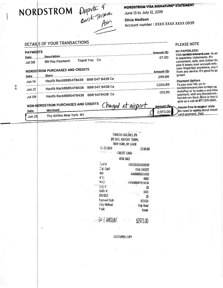 I received a reply on July 11, 2019 that Turkish Airline has evaluated my file and they will refund us 300USD for the 4 of us. I FIND THIS DECISION VERY unfair. 75USD per person for 7 days does not buy anything.
