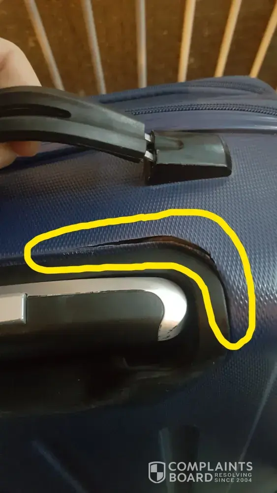 At arrival I was informed that my luggage was not loaded in airplane because the maximum weight of the airplane was reached. I received the trolley/luggage on Nov. 25th around 22:00 hrs. in my home. The luggage was sealed, no items were missing but I noticed a severe damage of my trolley.