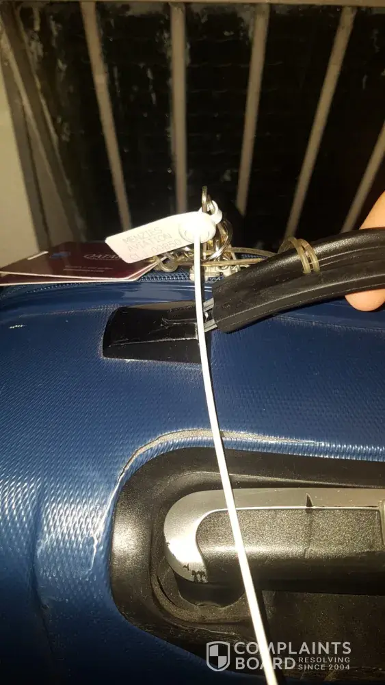 Please find attached pictures with the trolley damaged, labels and PROPERTY IRREGULARITY REPORT.