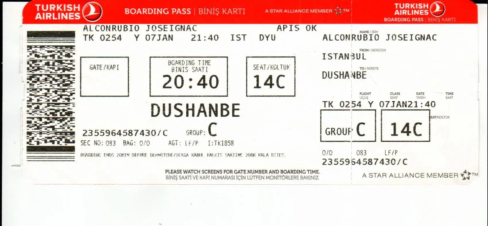 Below is the details of my booked flight from Turkey, Istanbul - to Tajikistan, Dushanbe. Boarding pass is attached to this complaint, as well.