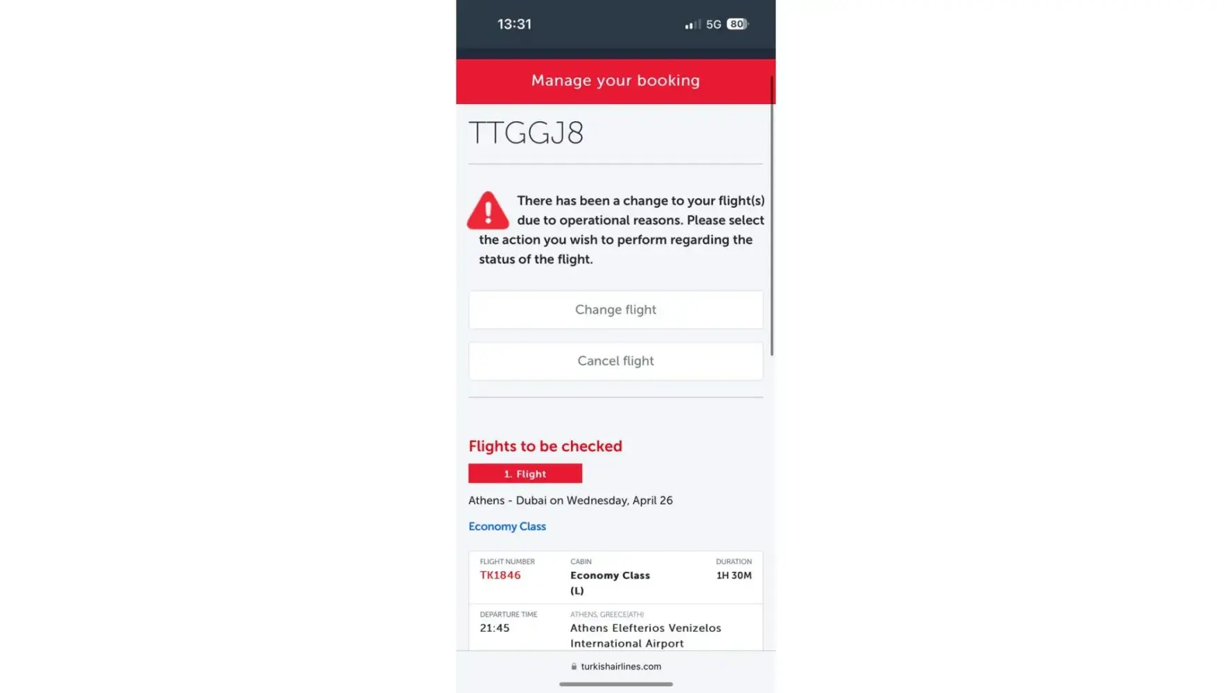 Flights TK761, TK1843 - 26th Feb