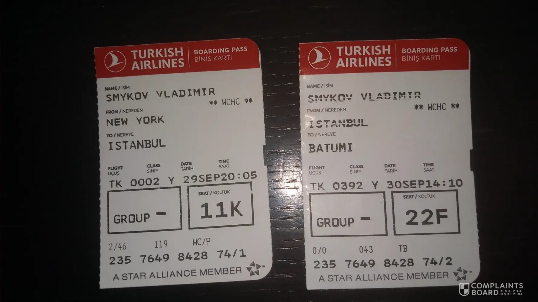 Desired outcome: Turkish airlines must reissue new tickets for the travelers Mirzoeva Nigora Nelly and Kareem Mirzoevback to USA