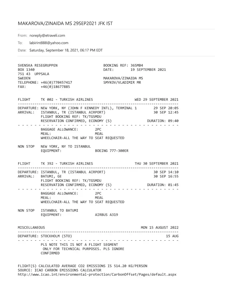 I undersigned passport nb R53751993 issued by IRI, got the flight from LAX to Baku, through Istanbul, on Sep 6th 2021 at 1;40PM TK180.