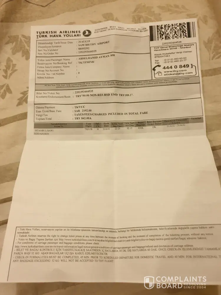 In istanbul sabiha airport, they treated me bad, refused issue boarding pass plus pushed my to pay around 900 TLÂ as attached in order to issue the boarding pass for istanbul jeddah!