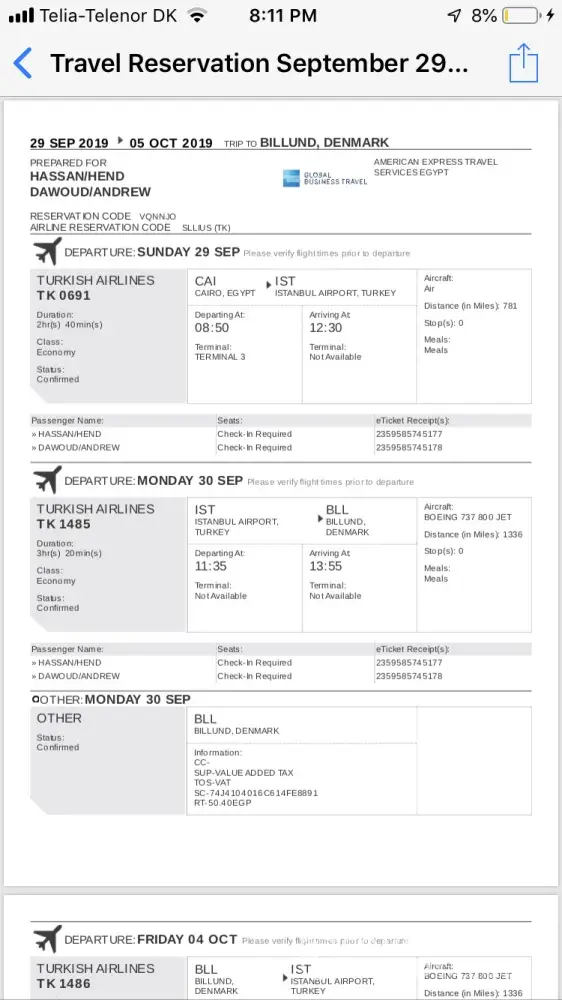 I came to your office in istanbul air port on 29/9 asking to reschedule my flight tk1485 from istanbul to billund to be on 1/10 instead of 30/9
