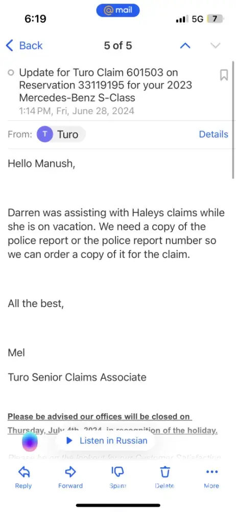 Now, I am currently having to contest this claim with the bank. It has been almost a month and a half, and Turo has still not been in communication with me to substantiate this fraudulent claim.