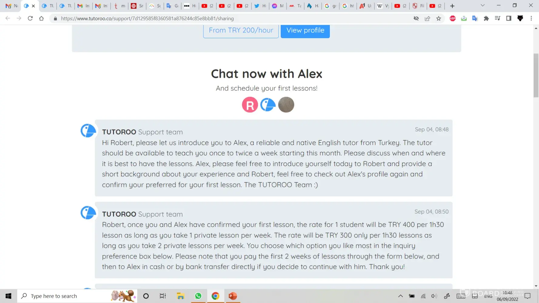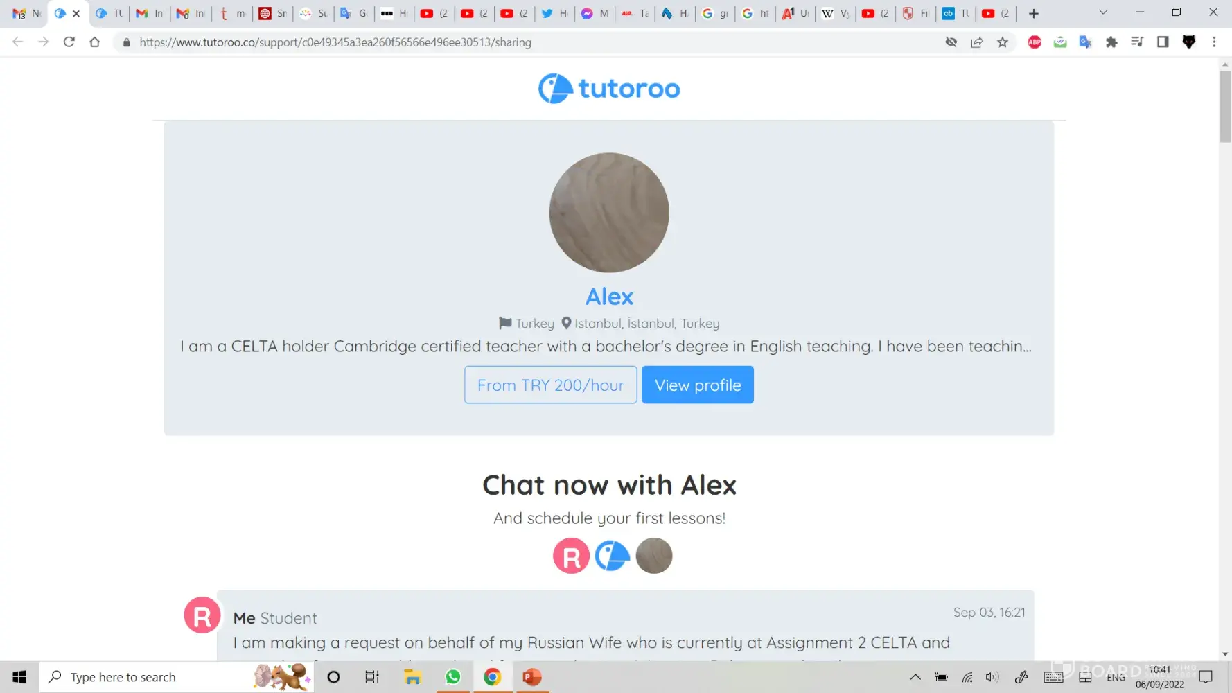 On Sunday 04/09/22 I was trying to find a CELTA (Cambridge English Language Tutor, Adult) Tutor/Coach for my wife who was struggling with certain aspects of the course. I had message exchanges with a Tutor named ALI/ALEX in Istanbul, but he did seem to know how to establish an online lesson and it was obvious that my specific requests had not been passed on to him.