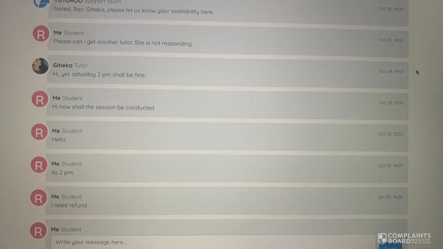 Which it proves my complaints against Tutoroo as an unreliable website/company, thanks.