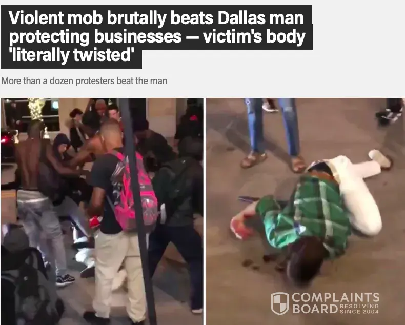 Your AD supports BLM's violence. If you refuse to remove it, then also put up Reginald Denny's pictures from blacks almost murdering him and the enclosed photo of a man trying to save businesses from being destroyed and people hurt - that BLM supporters almost stomped to death.