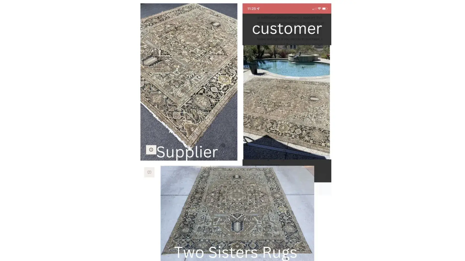 You are continuing to deceive. You didn't post either one of those photos, that you show above, on your website when selling the rug! You also stated in an email that you used an iphone 11 for the photos. Each rug dealer I met with said that iphones have auto settings to enhance pictures and that they only use professional photographers for their pictures. I didn't win my dispute case out of luck! I won because your pictures and description were not true. I had letters from 3 rug dealers, not just one! So it is factual and I am not speculating in any way. I am just thankful that I didn't end up like your other bad review on this site. Thank goodness for credit card companies that protect buyers from people like you. Again, BUYER BEWARE!