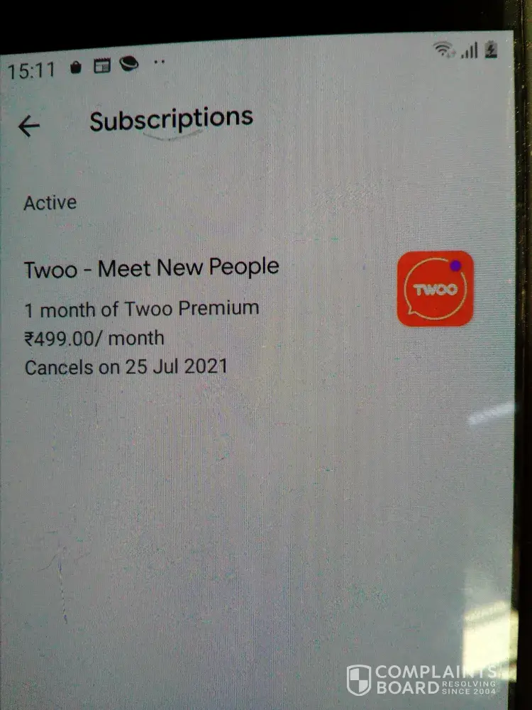 I made a payment to subscribe in twoo.com via the app and money was taken and this was the message attached here that I have subscribed but it was cancelled automatically, i made this payment for my friend and it was cancelled why? Please check and activate my premium in twoo.com my money taken: email: komej056@gmail.com payment was made from here google pay, ...name is Diya