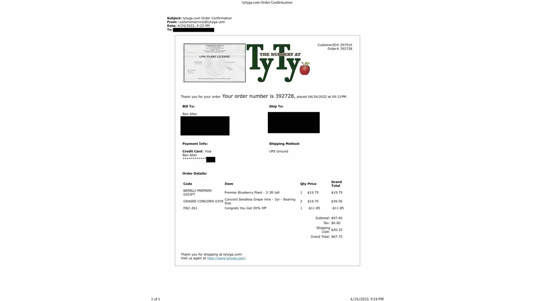 Tytyga.com / Ty Ty Plant Nursery complaints: history and resolution overview