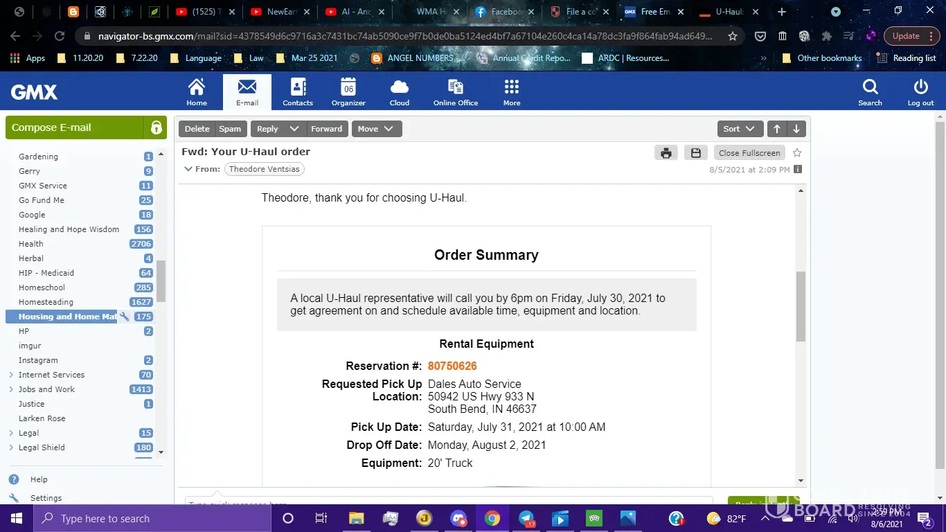 We had a 26' truck rental reserved for 10 a.m. Saturday, July 31, 2021.