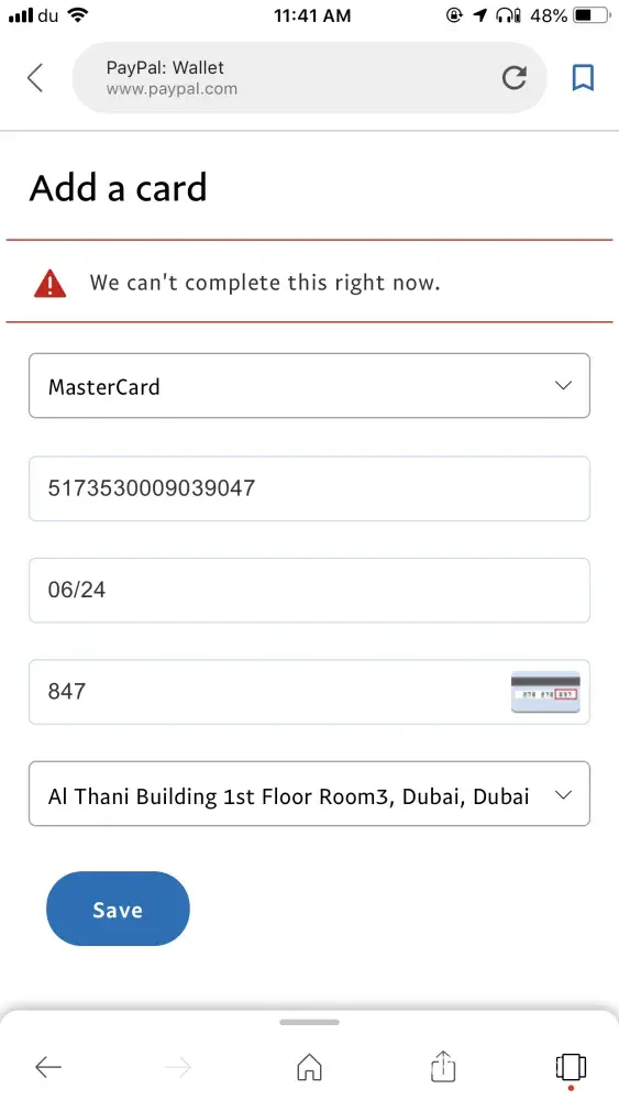 Hi just wanted to complain about my smart pay MasterCard I withdraw my salary and no remaining balance and I just wanted to sent some money through my smart pay card from PayPal and it's decline I dunno why it's decline .my smart pay is from my company Senso Garments Trading LLC .is possible I can deposit to my smart pay card or not ?i try many times to put money but always decline what is the problem of my smart pay ?hope you could help me as soon as possible thank you.