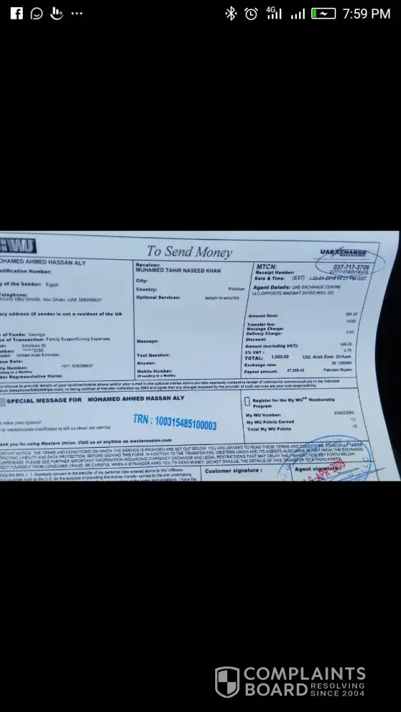 UAE Exchange Centre western union - money not converted to the receiver's local currency amount