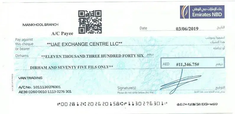 We deposited our company WPS salary cheque to UAE Exchange Centre, National Paints Br, Sharjah on 10.06.2019 and unforturnatly the cheque was returned from bank for the reason Signature irregular. We deposited cash instead of that bounce cheque on 11.06.2019 and salary was credited to our employees account. But that bounce cheque still (around one week completed) we didn't received from the branch and their reply and service was not acceptable.