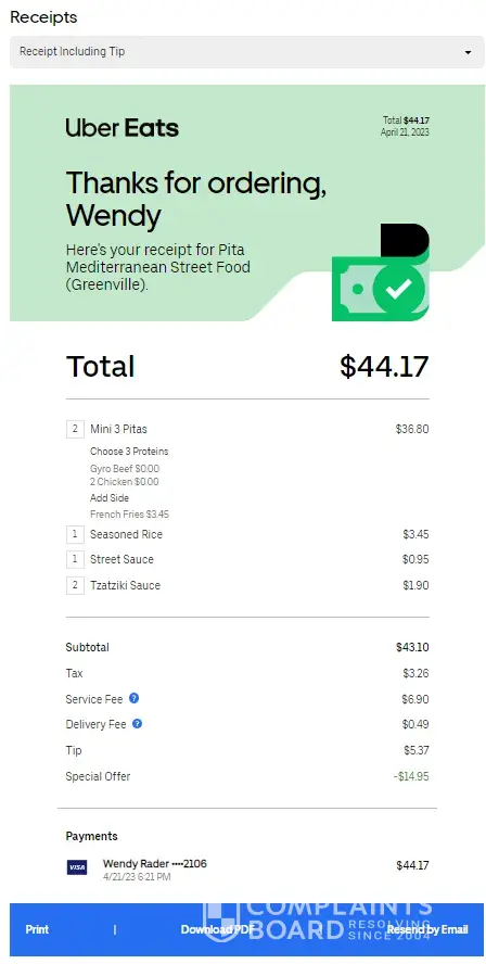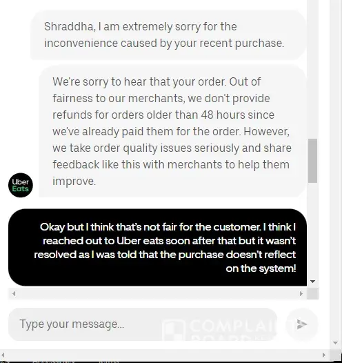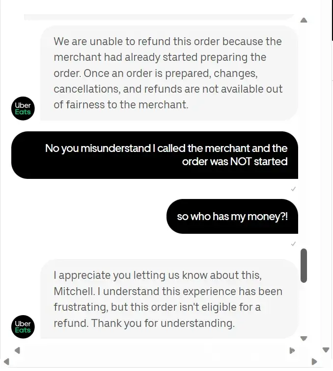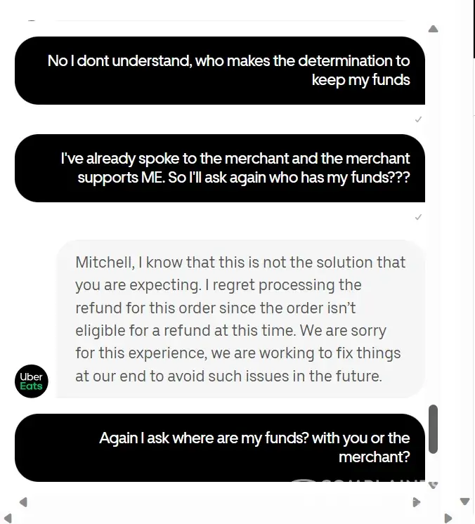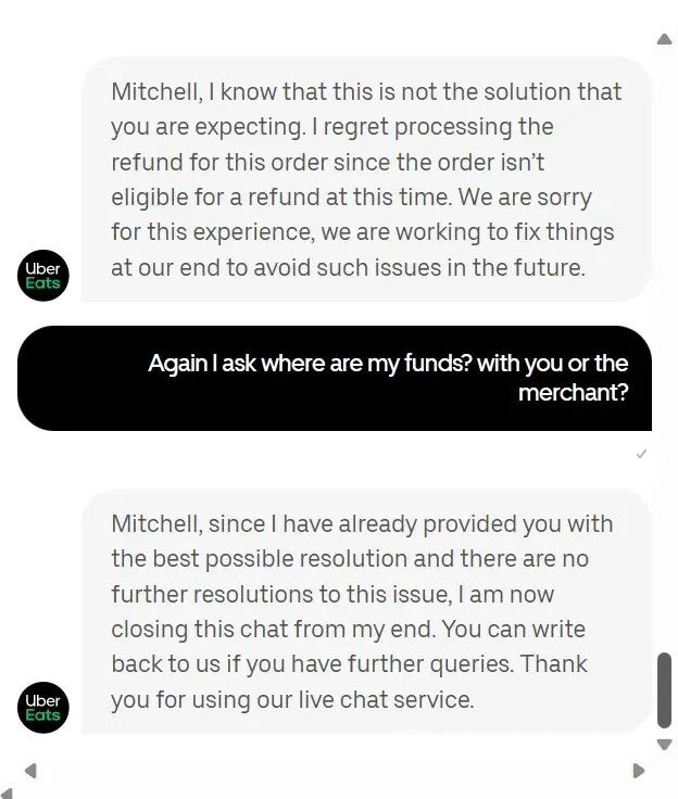 Uber eats refund not received