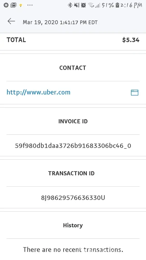 This is the invoice that does not correspond with the receipt i received from Uber Tech:Sep 19, 2019 UBER * PENDING SAN FRANCISCO CA