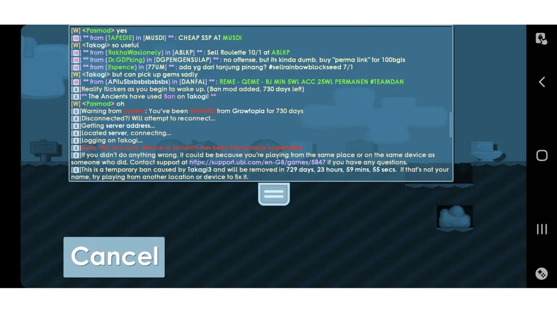 On the 2nd of July 1206hours growtopia time I was celebrating my birthday with my friends in his world I was chatting with them, but as I was explaining about how the heroic tights of prevention works (an item in growtopia)