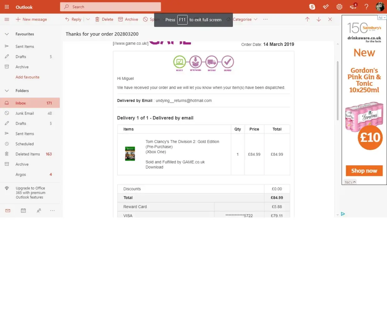 Here is a paypal receipt for one of the games I own in the library and a season pass I got from g2a for the division: