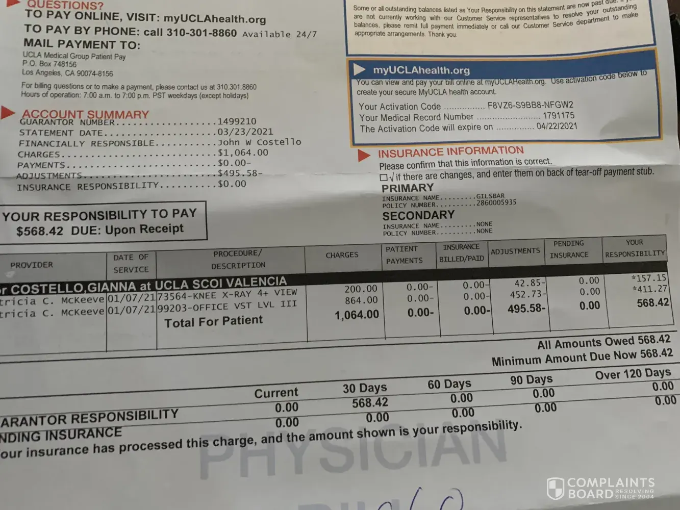 I have been going to SCOI for decades. However, UCLA Physicians have taken over the billing and it is WAY OUT OF CONTROL! I recently took my daughter to SCOI for a routing knee Xray and examination. I spent all of twenty minutes with the pediatric orthopedic surgeon and was billed $1064.00, $200.00 for the Xray and whopping $864.00 for the office visit. I find the office visit outrageous and far from reasonable. After the "adjustment" my responsibility was $568.42. Again, this is an absurd bill for the service provided. Furthermore, had I known I was going to be charged such a substantial amount for a routine examination, I would have selected another provider.