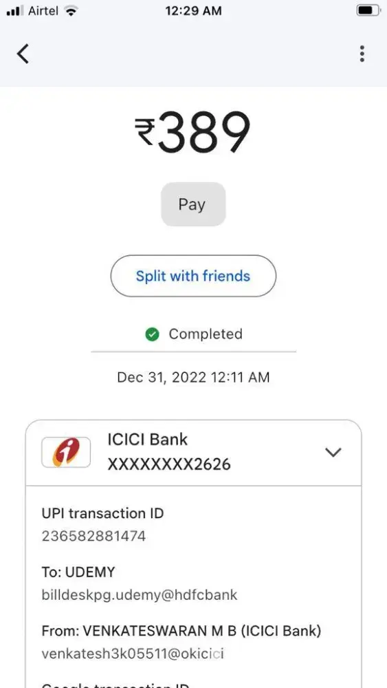 I have attached screenshot evidence of payment made from Gpay QR code scan payment