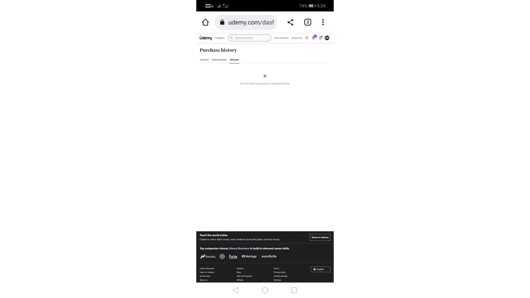 I purchased leetcode in python: algorithm coding interview question course I paid all the amount of rs.449, but the course was not shown on my udemy profile
