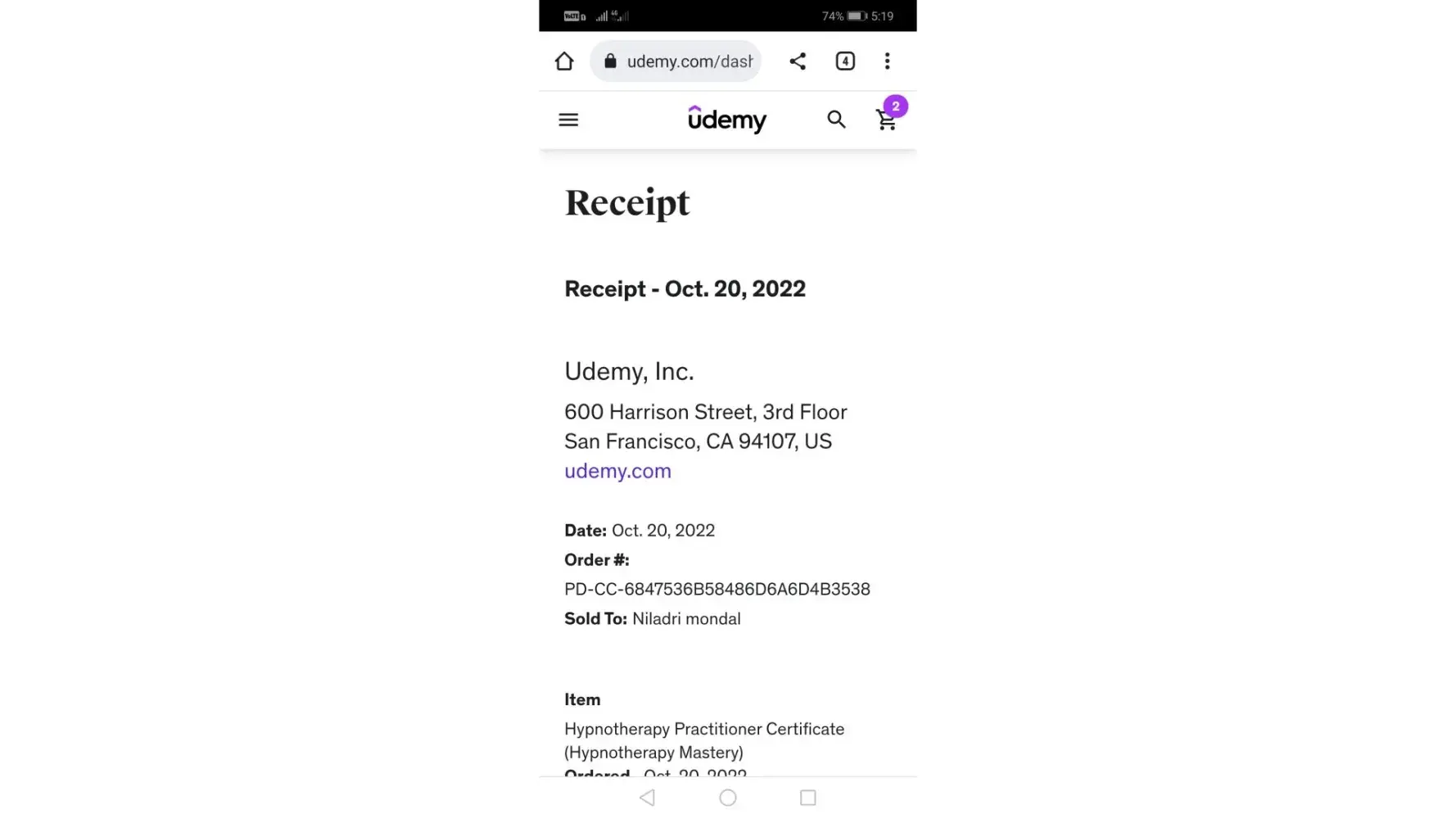 I bought this course in udemy named hypnotherapy practitioner certificate which I ordered a refund. Udemy said they process a refund within 10 days but it has be more than a month since I ordered the refund. Although the course has Been removed from my learning list there's no sign of refund anywhere. I bought the course on October 20th 2022