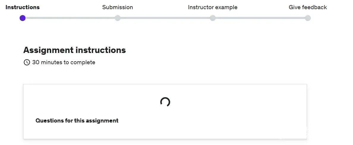 There is some problem in the app. I first thought it was my network problem. so i have changed the timing and other networks also but same problem happens again again. whenever the click on the assignment to complete, i am unable to write anything. it just shows loading sign. but doesnt come to an end, so that i can write anything. i have also tried to logout, refresh and login many times and finally became totally irritated from this. i have to soon complete the assignment so that i could get the certificate apreciation.