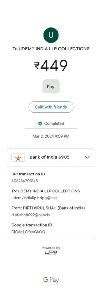 Hello, I was trying to buy a course on PMP Certification Exam Prep Course 35 PDU Contact Hours/PDU preparation, after I added to my cart and trying to make payment 389 INR via using option UPI QR code scanner from my mobile, amount was deducted from my Gpay account, but payment is not reflected in website /URL . Please help investigate and help for update the payment status in my cart for me to get the course and successful checkout.