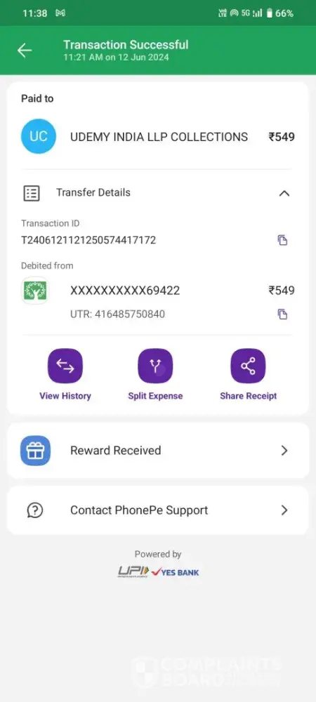 Udemy.com is real scam organization. Here is my experience. I have purchased 3 course's from Udemy and paid 1080 INR from my phone wallet. I have not received access to my purchased courses. When I contact Udemy customer support, the said they have not received money but I can see that money was deducted from my phone wallet and I have transaction id. Funny thing is, During my discussion with Udemy customer care representative before I provide them transaction id, they said even though I have transaction id they can't help in providing access to my purchased courses. After 48 hours, they mentioned that they have not received money and hence they cannot provide access to my purchased courses. Even though you have a transaction id which clearly chows that payment was done to Udemy india as shown below. I request all who wants to purchase courses from Udemy, just think twice and it is up to you. I AM SURE THIS IS A BIG SCAM.