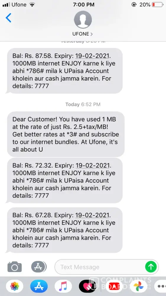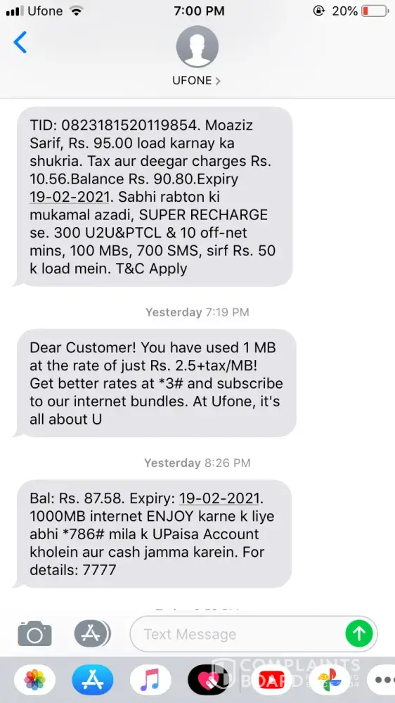 Read full complaint and 25 commentsI am not receiving the message when i dial, *706# to check the min validity date of ufone super card