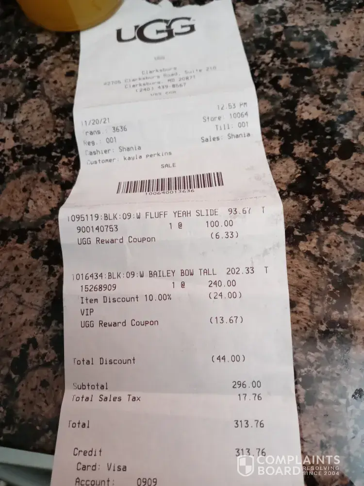 Read full complaint124 Ugg.com / Deckers Outdoor Complaints