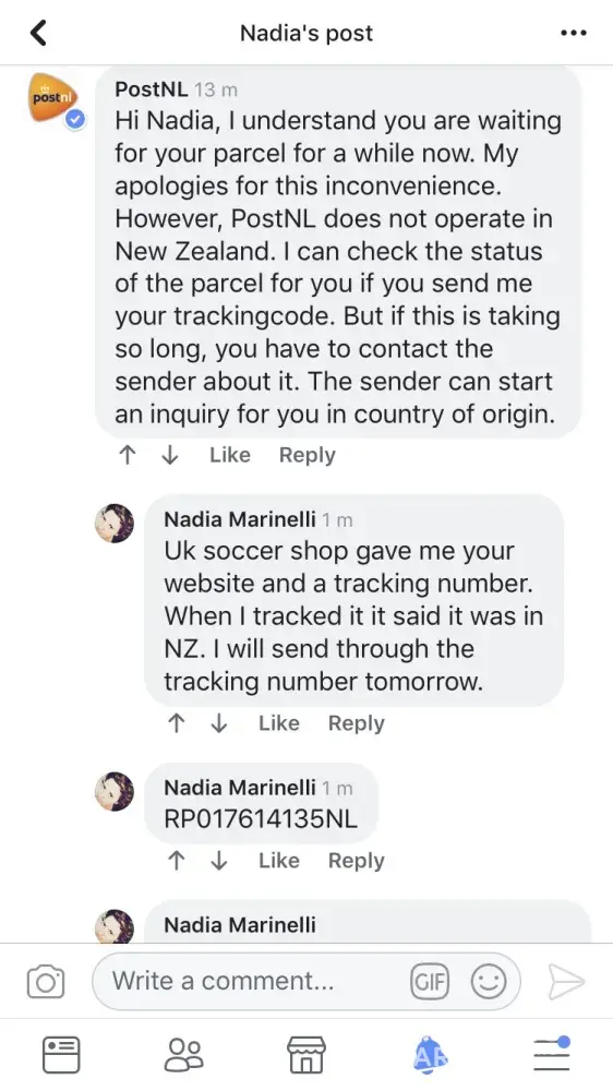 This parcel apparently arrived in my country on the 1st May - that is a month ago. I can't seem to find any contact details on the POSTNL website for the New Zealand branch.