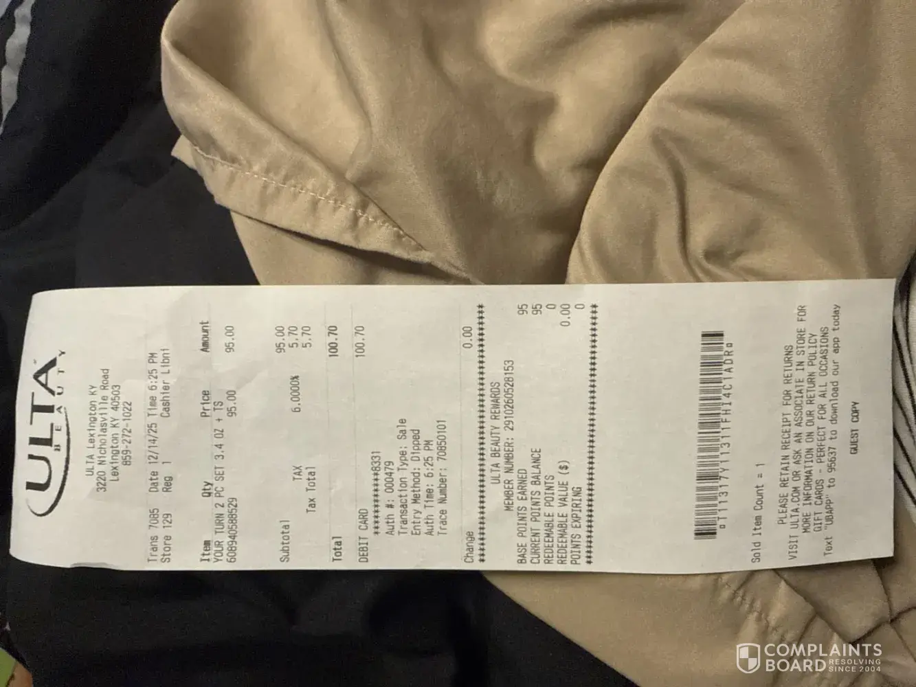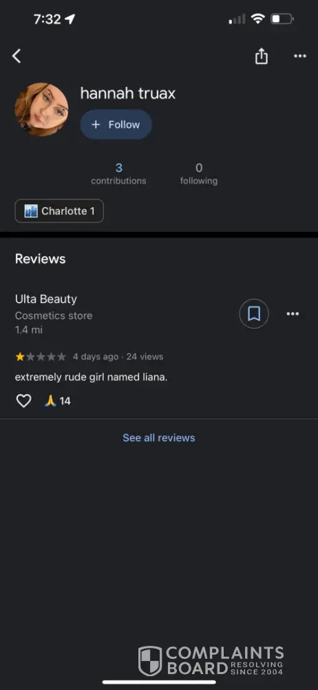 Read full complaintEmployee at Ulta Beauty- 7844 Rea Rd, Charlotte NC 28777