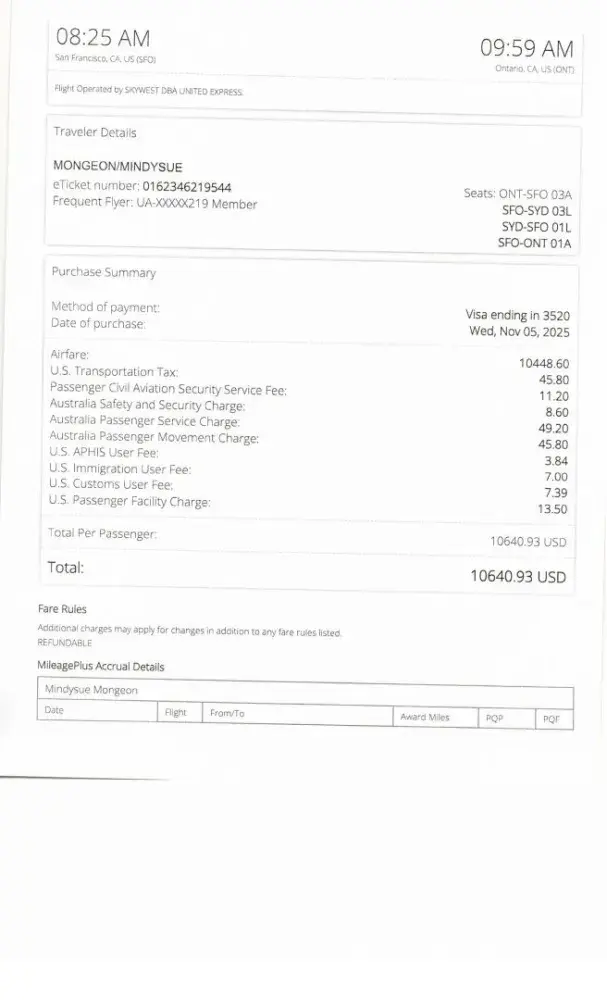 I bought the ticket in January 2020 right before the COVID and my flight was scheduled for April from San Francisco to Australia.