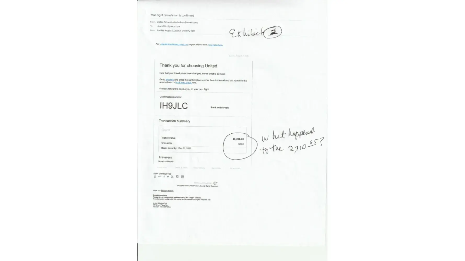 I have all documentations: Copy of tickets for both reservations, Charge to my credit card for the initial flight for $4,117.12 from United Airline and United Airline Changes/Cancellations from the etickets and from United website: