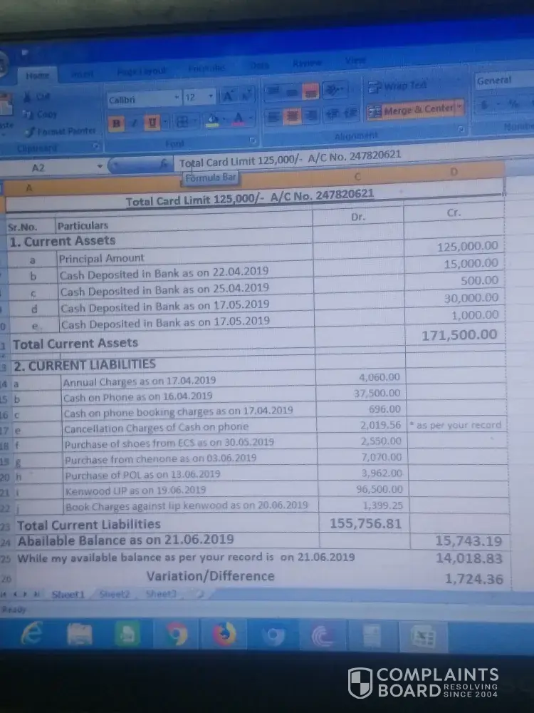 I am one of ubl Customer which has faced a lot of problem from the day 1st by getting credit card. the credit card department against lip cash on phone make me mad by debited excess charges. firstly they debit me Rs.75000/- against 37500/- due to which I have to deposit the loan amount lum sum but still they have not solved the issue, last week they settle down my issue, but now again they have charged me Rs.2019.56. My complaint is attached at my picture in detail please read and necessary action may be taken please as soon as possible