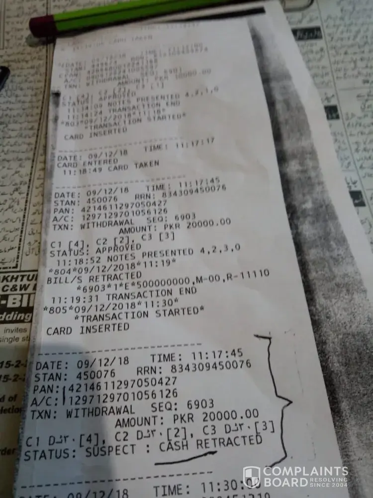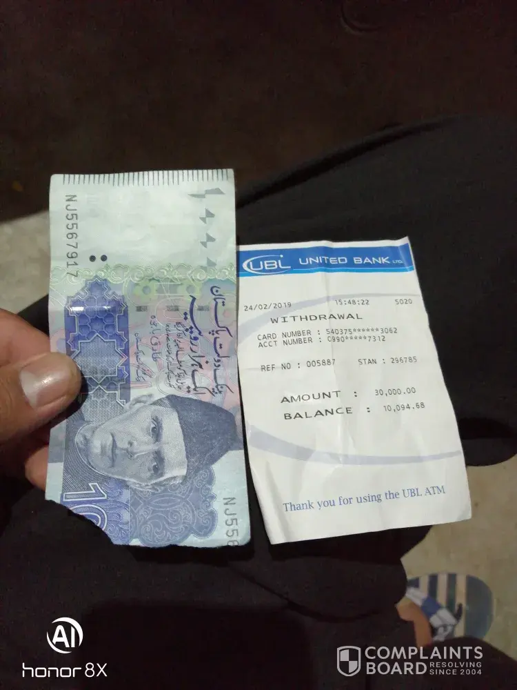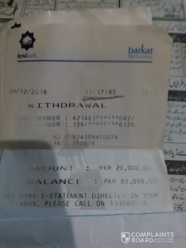 It has been months since I launched complaint, my father withdraw 20k from atm of (fasil bank) in wah cant, punjab pakistan. My fathers account iban is pk 95 unil [protected] (ubl bank basti karigaran branch - 1297 - wah cantt)