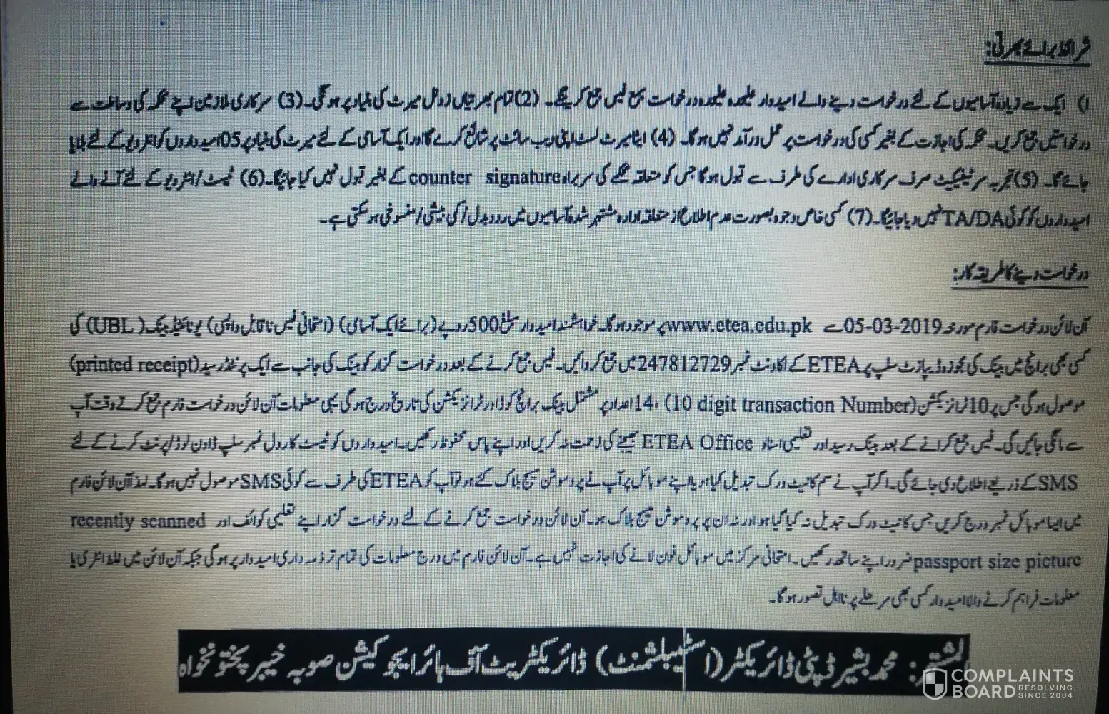Today is the 2nd last day for submission of online amount for recruitment in ETEA Peshawar.