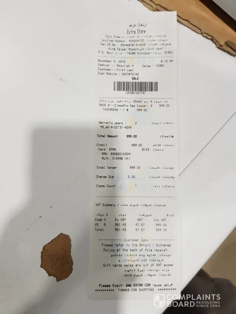 I need that gas cooker and I have proofs of invoice and Mada receipt as evidence.