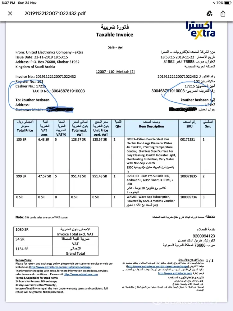 I have complian.. I bought device by net last week and canceled it.. It arrived to my home received by my home guard.. Despite I canceled it.. Called ur hotline which usually no one answer.. They told me take the invocie and go to nearest extra shop... Tilll now the invoice not received