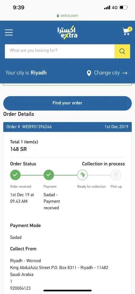 I purchased online PS4 plus voucher with order number WEB901396246. I visited couple of time the selected extra store but they are saying order number is not appearing in our system we cannot support you. Call on 9200 number and make complain. I called them and they said you already paid for item you can collect from