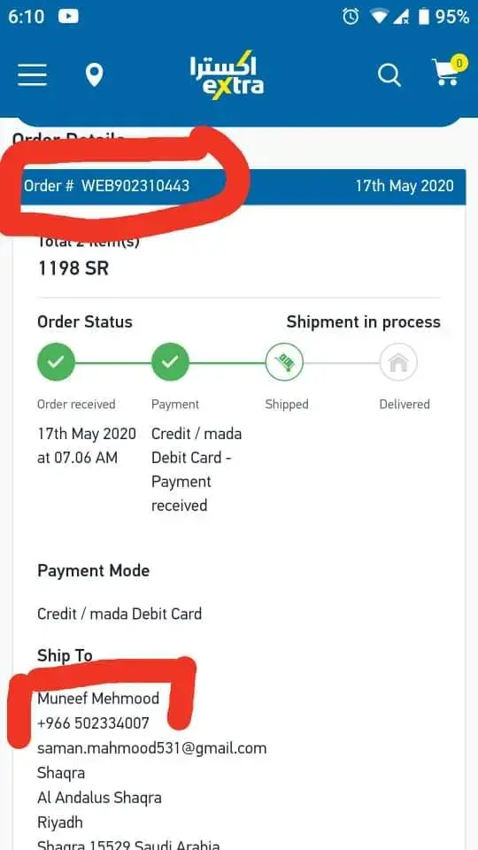 I track shipment everyday, Smsa have not contacted at all and not delivered at my location. Last message showing as (Attempted delivery consignee content number is incorrect). This is clear cheating. This also effect credibility of EXTRA STORES by not delivering as when order is confirmed.
