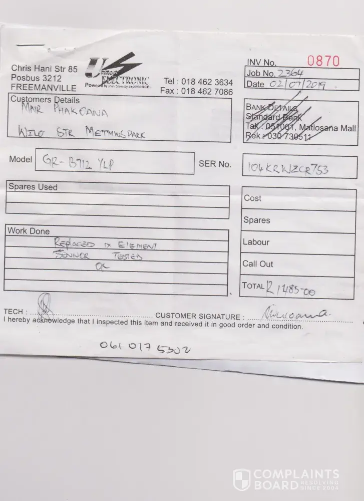 since 02 July 2019 my LG fridge has not been fixed despite full payments for repair. it was claimed that the element was the problem. every month since then, it is replaced without any change.
