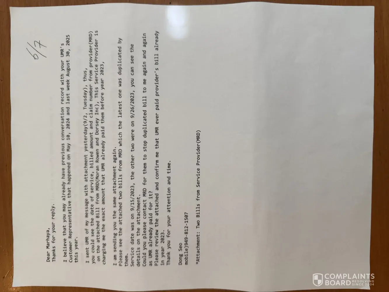 Explanation of Benefits (EOB) This is a formal complaint regarding UMR’s failure to provide my EOB despite multiple requests